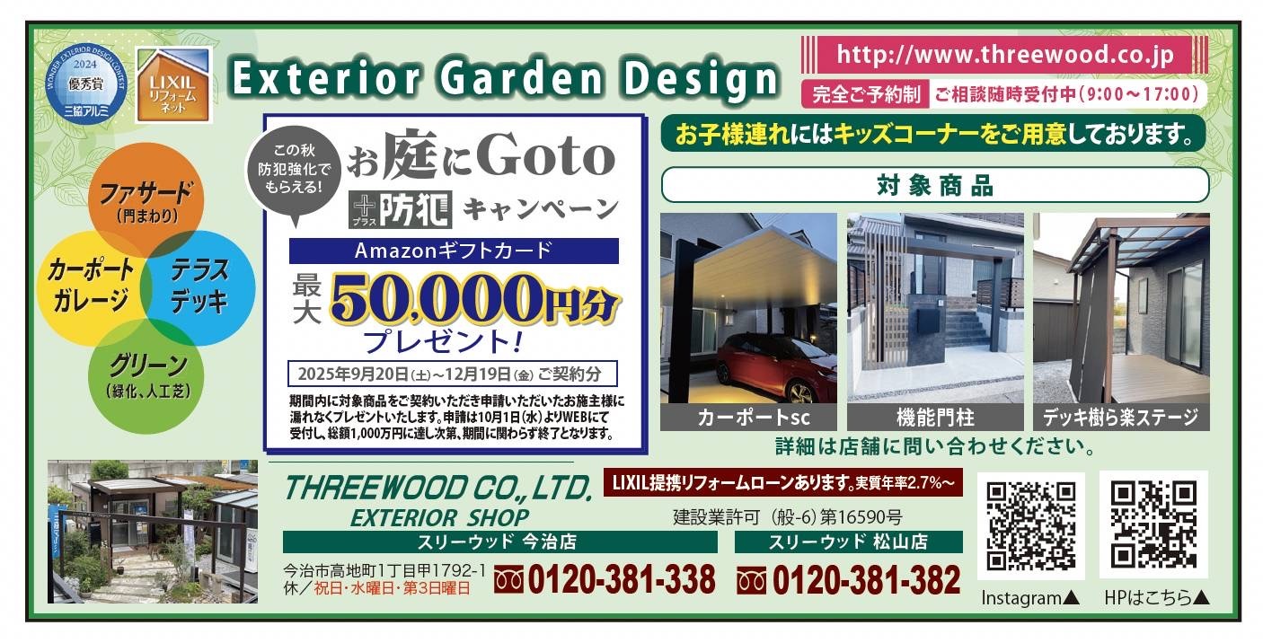 株式会社スリーウッドは愛媛県今治市・松山市にあるエクステリアの専門店です