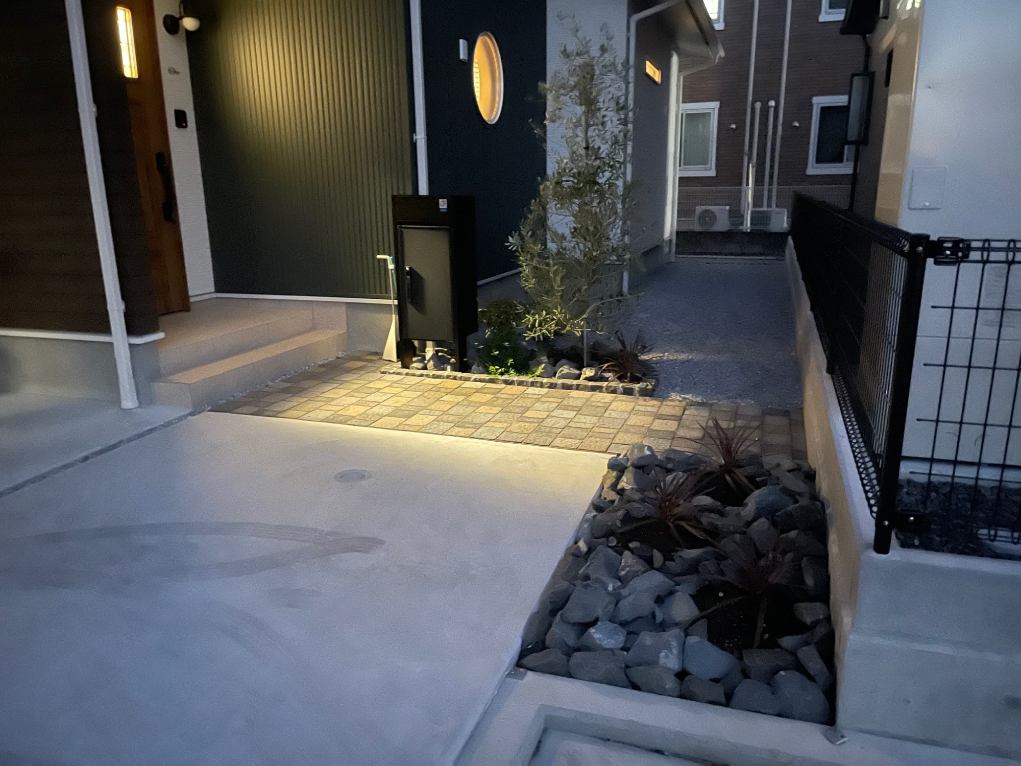 シンボルツリー周りにもライトを設置し玄関周りが華やかになりました