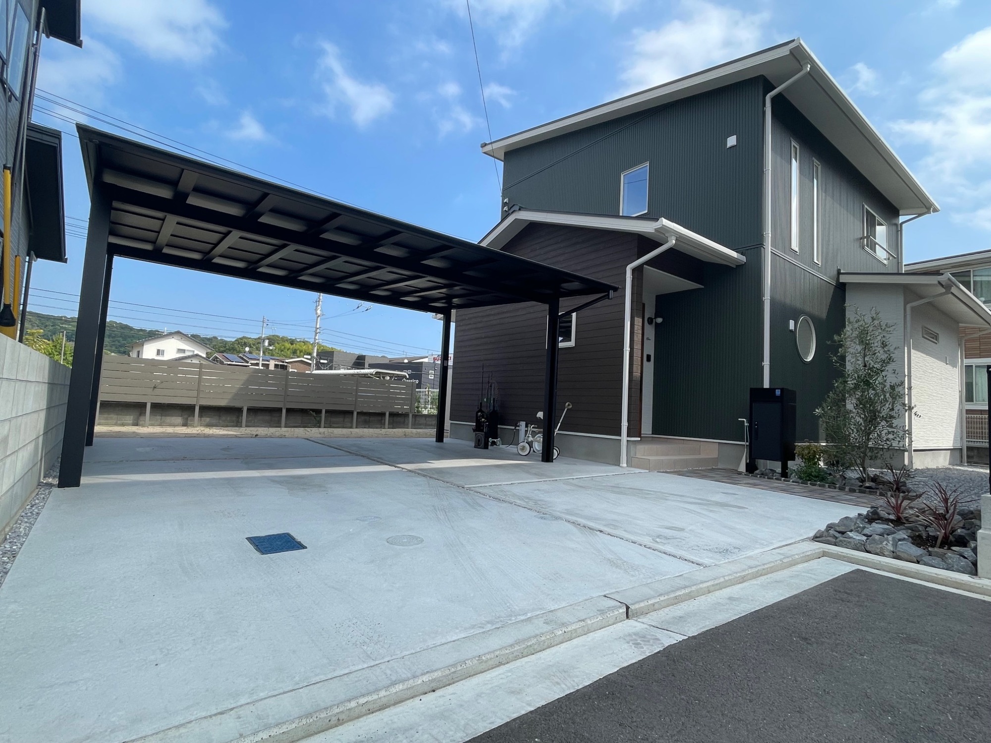 新築外構のご依頼です カーポートは3台用やはり見応えありますね